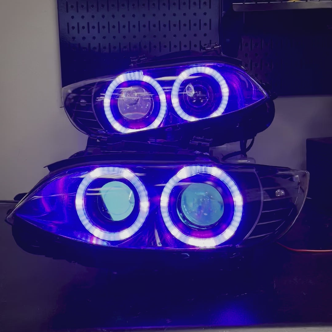 The OEM round ring setup suffers from very old technology which results in uneven rings where the inners are brighter (and not very bright to begin with) than the outers, and they are also an unsightly yellow which makes the car look very old and dated. Our round ring retrofit solves all of that as they feature the brightest rings on the market with over 160 LEDs in the inner ring and over 190 LEDs in the outer ring in a very modern 6k white color!