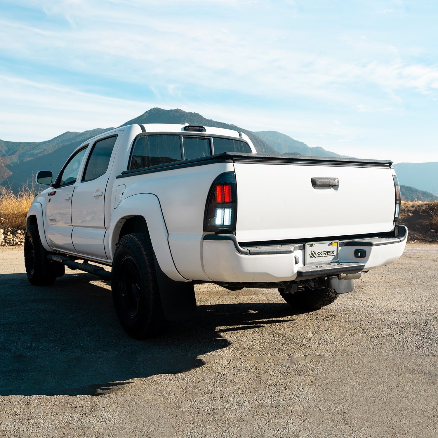Introducing the 2nd Gen Toyota Tacoma NOVA-Series Prismatic LED Tail Lights—an outstanding addition to our NOVA-Series, now featuring advanced prism optics technology. Inspired by the sleek design of the 4th Gen Tacoma, these tail lights boast a refined arrangement of four straight LED trapezoidal prisms, a central LED tube, and a side LED panel, enhancing both style and functionality.