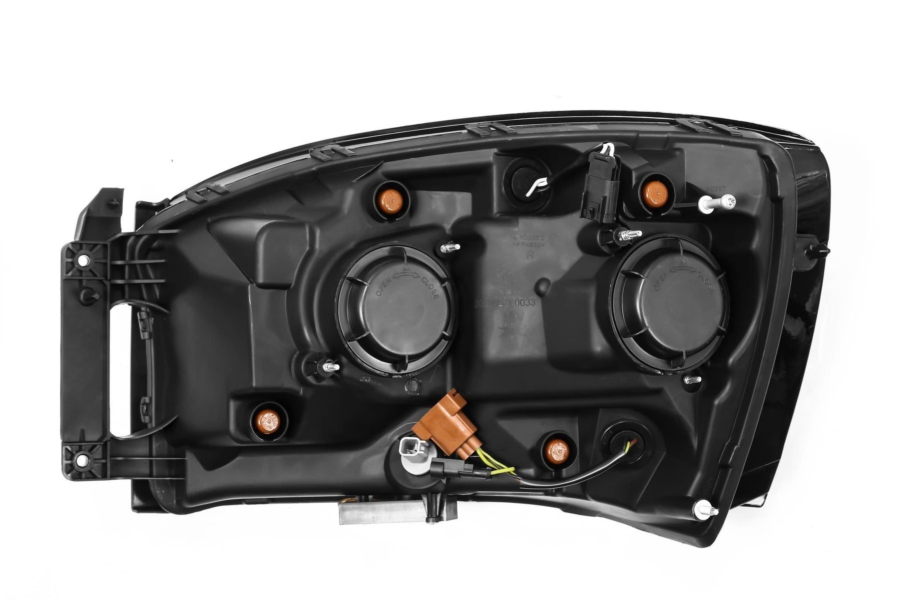 The inner projector is dedicated to high beam functionality, while the outer projector handles low beam illumination. To ensure reliable performance, these 3rd gen Dodge Ram PRO-Series projector headlights utilize H7 halogen bulbs for both low and high beam applications. Elevate your 3rd gen Dodge Ram with our 3rd gen Dodge Ram PRO-Series projector headlights, offering a blend of innovative design and practical functionality for enhanced visibility and style on the road.