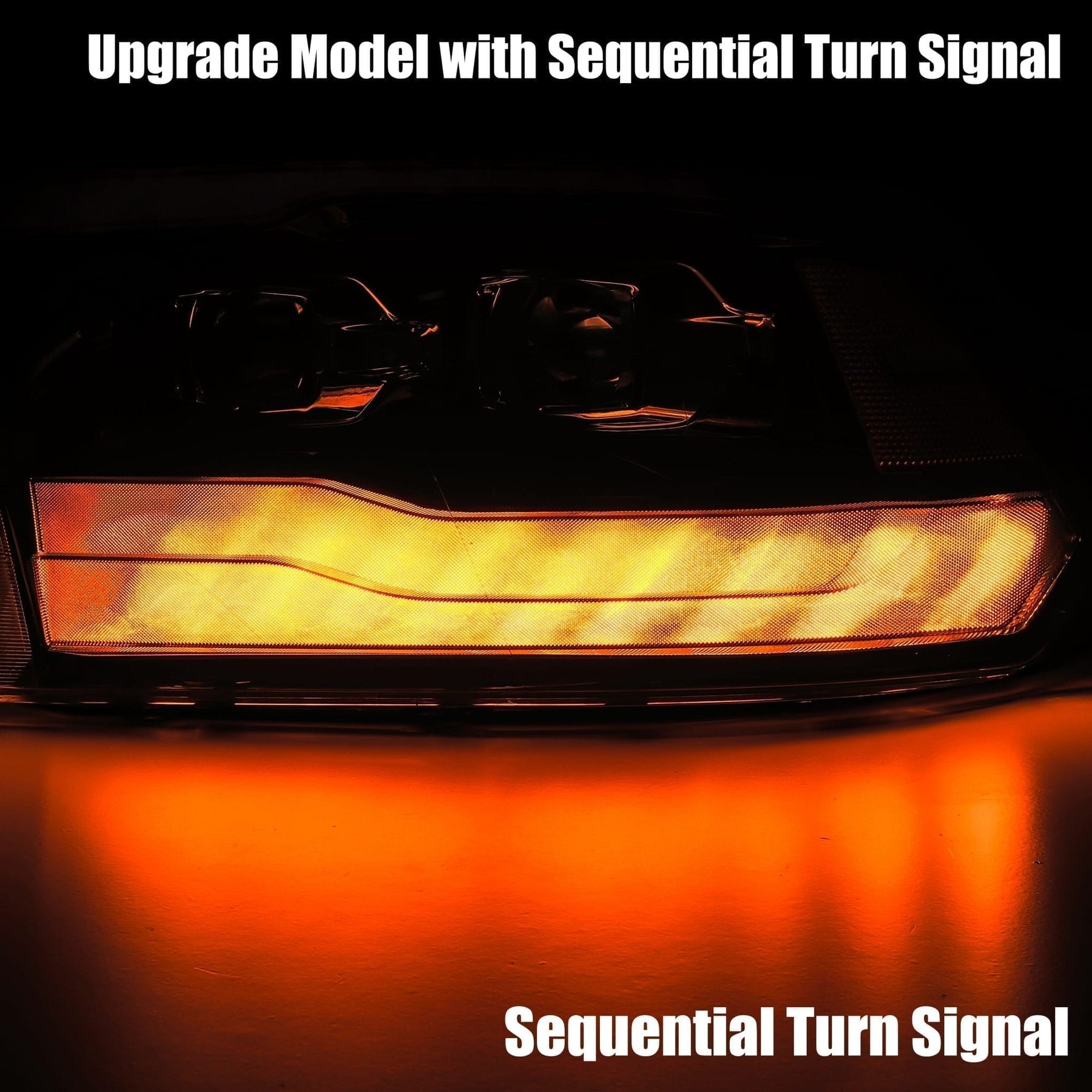 In crafting the 4th gen Ram Truck PRO-Series projector headlights, we've harnessed the design elements of the 5th generation Ram trucks and translated them for use in the 4th generation Ram. These headlights feature both top and bottom DRL light tubes illuminated in white LED, with the bottom tube also serving as an amber sequential turn signal light. Additionally, the middle section adopts a dual projector design, with the inner projector dedicated to high beam functionality and the outer projector to low beam illumination. As for the lighting source, these 4th gen Ram Truck PRO-Series projector headlights utilize H7 halogen bulbs for both low and high beam operations, ensuring reliable performance in various driving conditions.