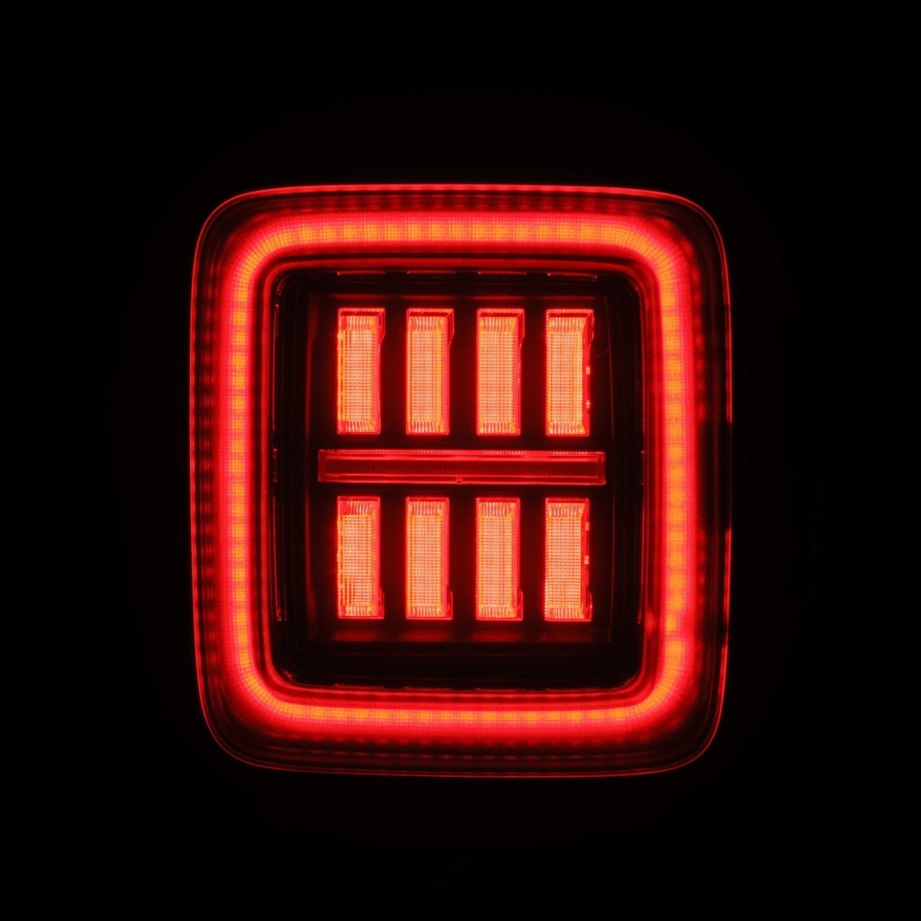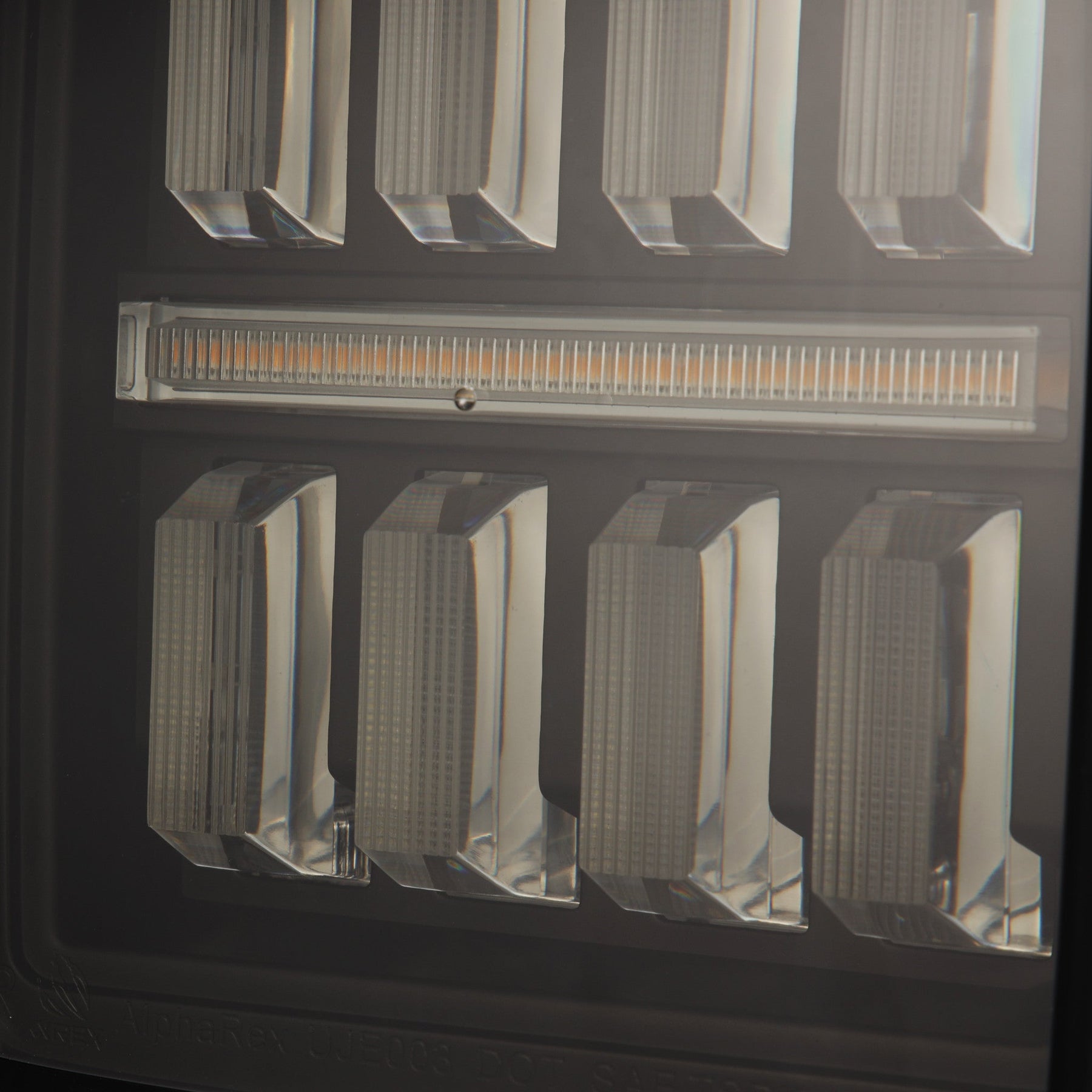 Introducing the Jeep Wrangler JL NOVA-series Prismatic LED tail lights, our pioneering entry into NOVA-Series Prismatic tail lights with prism optics technology. These Jeep Wrangler JL NOVA-series Prismatic LED tail lights showcase 8 trapezoidal prisms. The top 4 prisms utilize red LEDs for braking, while the bottom 4 prisms combine red brake LEDs with white reverse LEDs for enhanced visibility. Nestled between these prisms is a diffuser lens light tube, emitting an amber LED sequential turn signal. A standout LED tube surrounds the tail lights, creating a 3D effect and illuminating as a parking light. Unique to AlphaRex, these Jeep Wrangler JL NOVA-series Prismatic LED tail lights feature our signature activation light sequence when the parking lights are turned on, adding a distinctive touch to your Wrangler JL. Upgrade to our Jeep Wrangler JL NOVA-series Prismatic LED tail lights for a blend of sophistication and functionality.