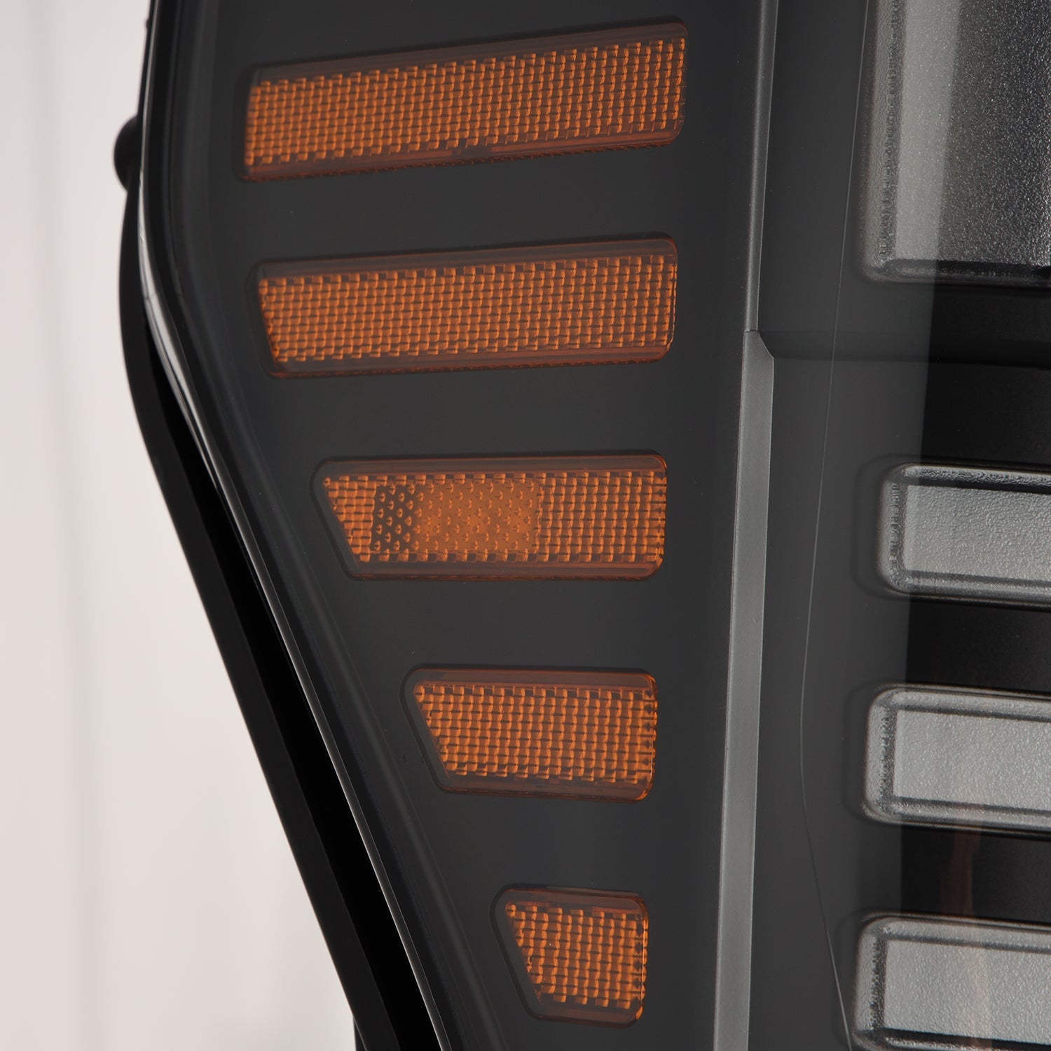 Engineered for both form and function, these headlights incorporate switchback LED light tubes around the main projector, serving as dynamic DRLs and sequential turn signals, providing a modern and attention-grabbing lighting signature. The AlphaRex signature three-line signal lens in the center further enhances visibility, ensuring clear signaling while adding a distinctive design element that sets your Super Duty apart.
