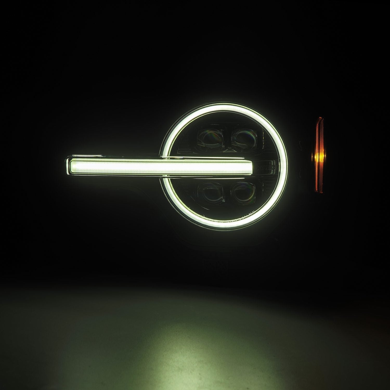 Introducing our 6th gen Ford Bronco NOVA-series headlights, meticulously designed to perfectly complement the signature LED aesthetic of the 6th Generation Bronco. We have incorporated four of our patented 3D ice-cube projectors, along with the iconic 6th Gen Bronco signature circle and straight LED tube, to achieve an impressive and cohesive look. The LED lights serve a dual purpose, functioning as both the daytime running lights (DRL) and a sequential turn signal on the straight tube in an eye-catching amber color. Additionally, the DRL can be easily configured to emit a white (default) or amber output, allowing you to customize the look and upgrade to a Raptor amber LED style if desired. Our 6th gen Ford Bronco NOVA-series headlights also feature an activation light that acts as a running light whenever you unlock your Ford Bronco, adding a touch of elegance and functionality. For low beam illumination, all four projectors light up, providing optimal visibility on the road. During high beam operation, only the bottom two projectors are utilized, ensuring focused and powerful lighting performance. With our 6th gen Ford Bronco NOVA-series headlights, you can enjoy a seamless integration of cutting-edge technology and distinctive design, enhancing both the appearance and functionality of your 6th gen Ford Bronco.