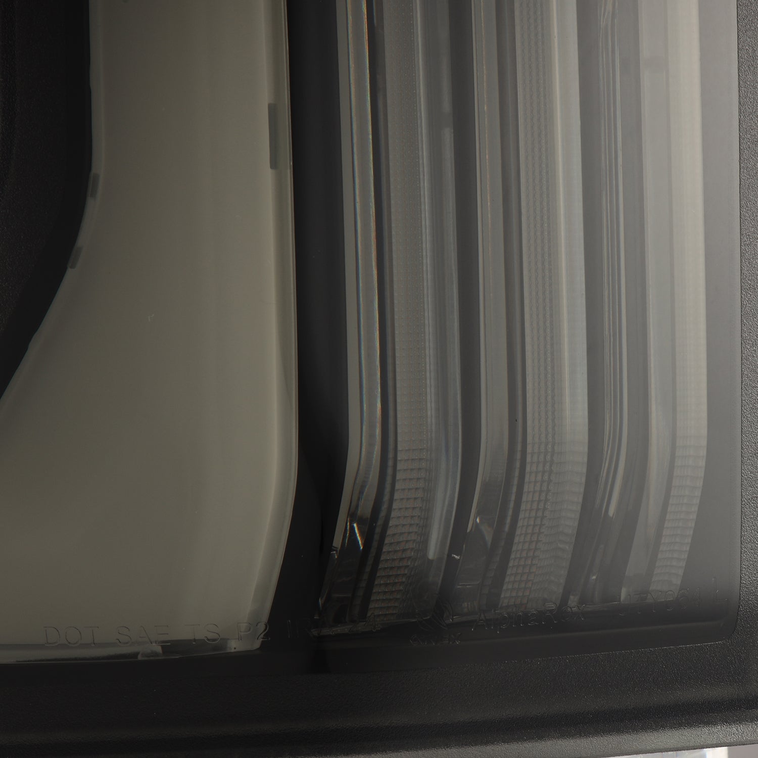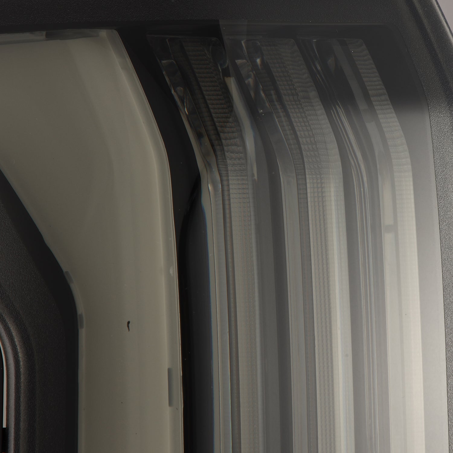 The trapezoidal prisms illuminate with red LEDs for parking lights, intensifying when braking. For turn signals, amber LEDs activate across the prisms and the LED side panel in a dynamic sequential flow, adding a modern touch. The side LED tube mirrors the signature look of the 3rd Gen Tundra, providing additional parking light functionality, while the central LED tube lights up with white LEDs as a reverse indicator.
