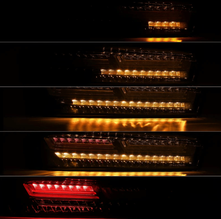Additionally, the bottom section is equipped with amber LEDs for the turn signal function, providing the option for either standard blinking turn signal or sequential turn signal, depending on your preference.